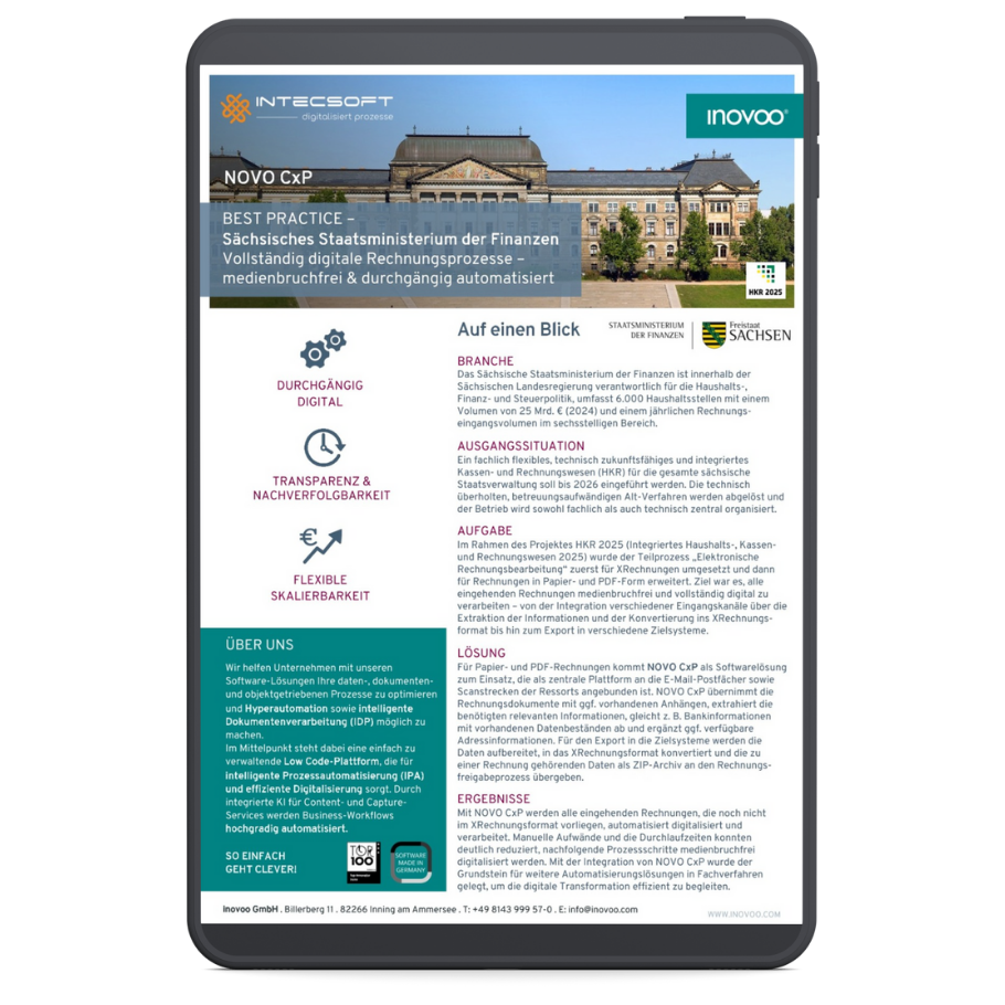 Das Sächsische Staatsministerium der Finanzen hat seinen Rechnungseingang erfolgreich mit inovoo automatisiert.