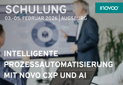 Mit dem Training "Intelligente Prozessautomatisierung mit NOVO CxP und AI" lernen Sie die Vielfalt von NOVO CxP am Praxis-Beispiel kennen.
