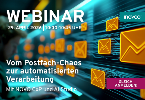 Wir zeigen Ihnen praxisnah, wie Unternehmen mit NOVO CxP und NOVO AI Studio E-Mails auslesen, intelligent verteilen und automatisiert verarbeiten – transparent, einfach steuerbar und mit sofortiger Entlastung im Tagesgeschäft.