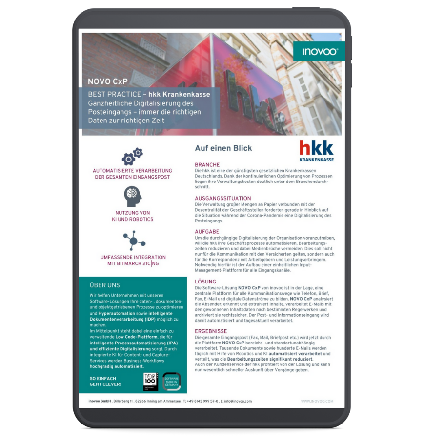 Die hkk hat als eine der günstigsten gesetzlichen Krankenkassen Deutschlands ihre gesamte eingehende Kundenkommunikation automatisiert - über alle Eingangskanäle hinweg. Wie die Krankenkasse das erreicht hat und ihre Kunden davon profitieren, erfahren Sie im Referenzbericht: